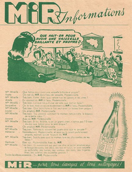 FEUILLETS PUBLICITAIRES POUR "MIR" NETTOYANT LIQUIDE