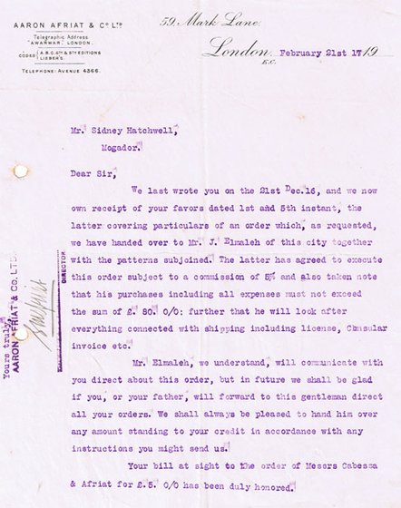 COURRIER ADRESSÉ LE 21/02/1917 À SIDNEY HATCHWELL