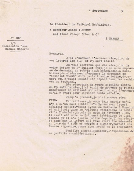 COURRIER ADRESSÉ LE 04/09/1945 À JACOB I. COHEN DE TANGER