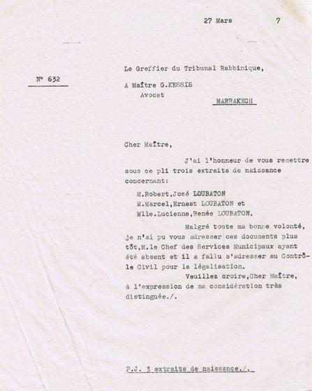 COURRIER ADRESSÉ LE 12/03/1947 À G. KESSIS, AVOCAT À MARRAKECH