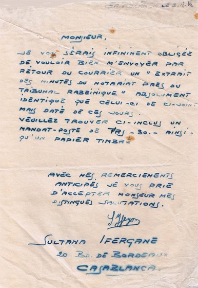 COURRIER ADRESSÉ LE 03/11/1942 AU TRIBUNAL RABBINIQUE