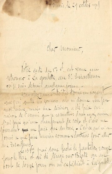 LETTRE ENVOYÉE DE TUNIS LE 29/10/1915