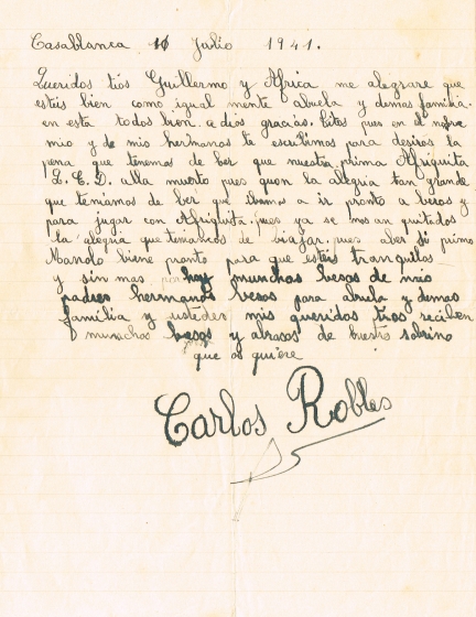 LETTRE ADRESSÉE LE 11/07/1941 À GUILLERMO Y AFRICA