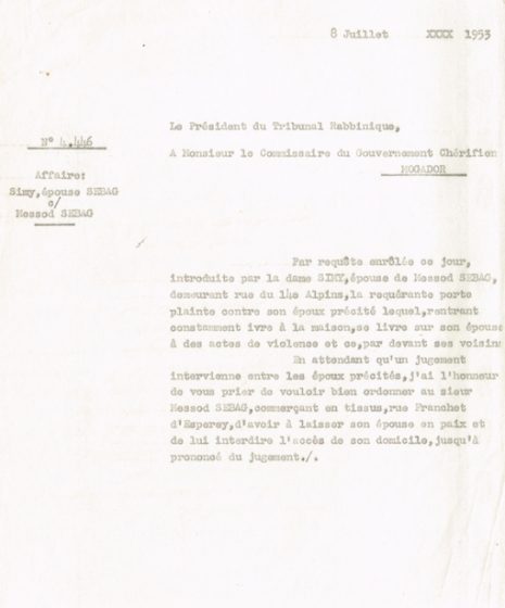 Courrier concernant l'affaire Simy Sebag contre Messod Sebag