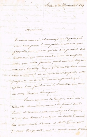LETTRE ADRESSÉE LE 21/12/1849 À M. DE CHASTEAU DE TANGER
