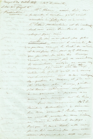 LETTRE ADRESSÉE LE 30/10/1845 À M. GUIZOT, MINISTRE DES AFFAIRES ETRANGÈRES