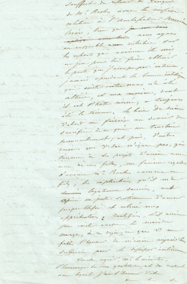 Courrier concernant Léon Roches, Interprète en Chef de l'armée d'Afrique puis Ministre Plénipotentiaire de France au Japon.