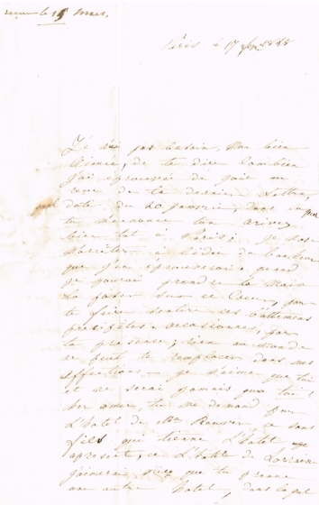 LETTRE ADRESSÉE LE 17/02/1845 À M. DE CHASTEAU, CHARGÉ D'AFFAIRE DE FRANCE À TANGER