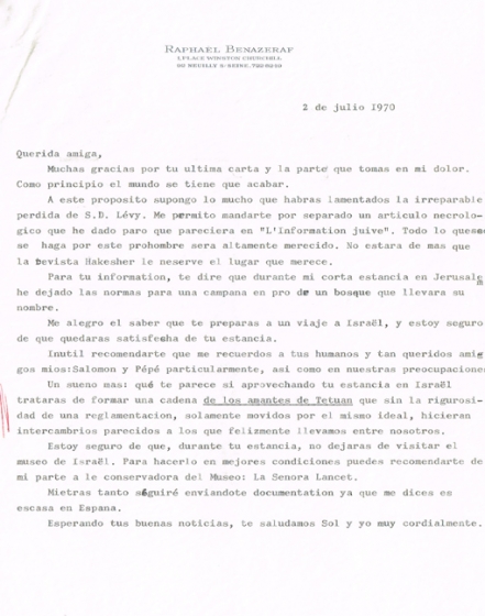 LETTRE ADRESSÉ LE 02/07/1970 À ESTRELLA ISRAEL DE MADRID