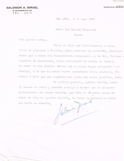 LETTRE ADRESSÉE LE 05/05/1970 À RAPHAEL BENAZERAF DE NEUILLY-SUR-SEINE