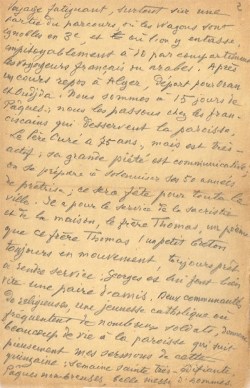 Courrier de 11 pages relatant un périple en Tunisie, Algérie et Maroc