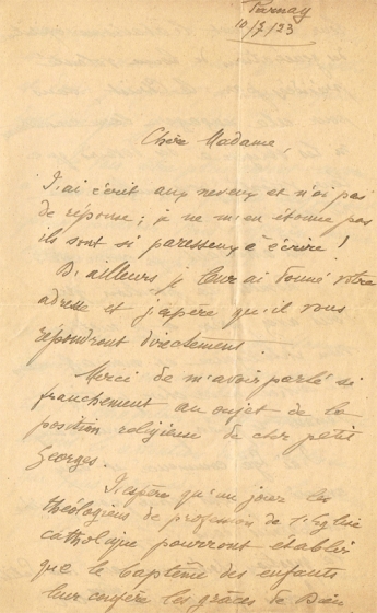 LETTRE RÉDIGÉE LE 10/07/1923 DEPUIS PARNAY