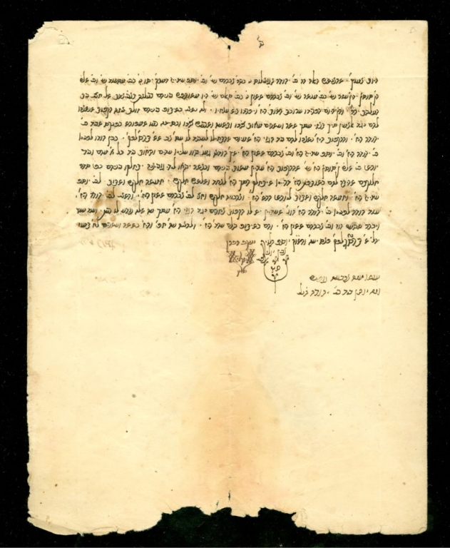 להיות אמת וצדק שהאנשים יהודה אגואלוס בן אברהם ויוסף עטייא יסו בן מסעוד ושלם הן' סוסאן עזר בן מנשה ואברהם ששון וסאלם היו משותפים במלאת החייטות של חצר המלכות וכיום נפרדו ולכן עשו סדר בעניין שלהם בעניין ההקפות פאס והיה זה בששה ועשרים לחודש תמוז שנת תרס"ג לפ"ק וחתומים יוסף הלוי אבן יולי יעקב הכהן סקלי