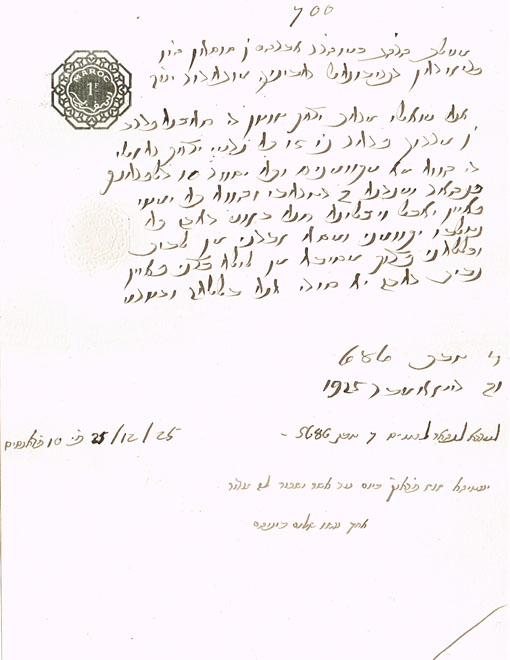 DOCUMENT DU TRIBUNAL RABBINIQUE DE MOGADOR - 700