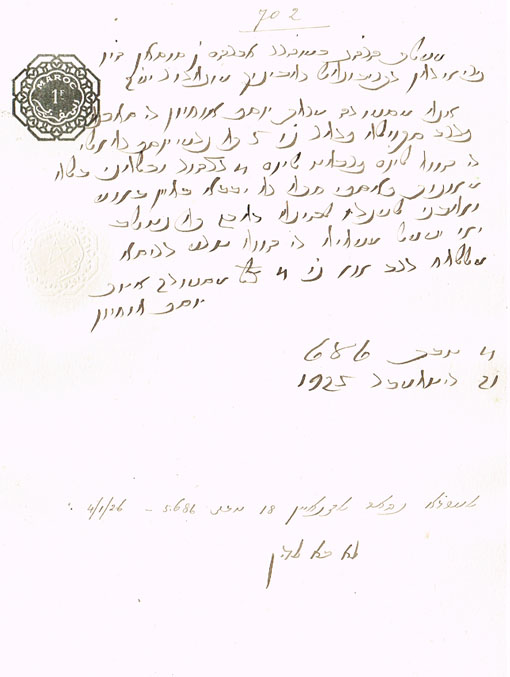 DOCUMENT DU TRIBUNAL RABBINIQUE DE MOGADOR - 702