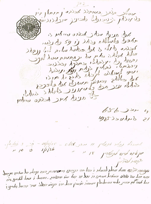 DOCUMENT DU TRIBUNAL RABBINIQUE DE MOGADOR - 703