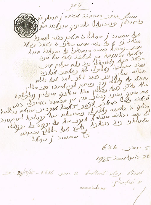 DOCUMENT DU TRIBUNAL RABBINIQUE DE MOGADOR - 704