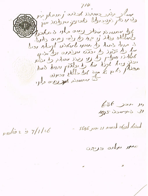 DOCUMENT DU TRIBUNAL RABBINIQUE DE MOGADOR - 714