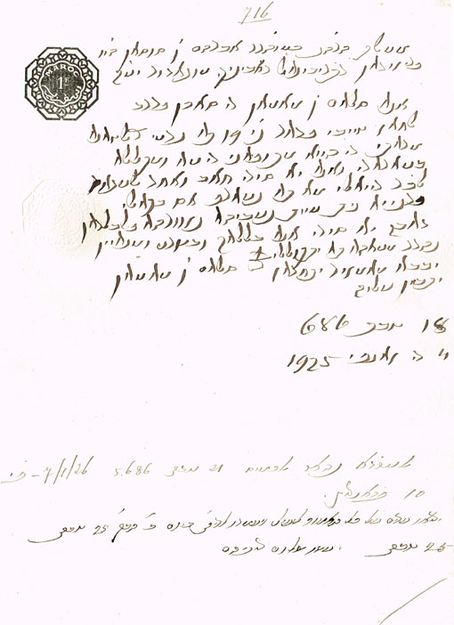 DOCUMENT DU TRIBUNAL RABBINIQUE DE MOGADOR - 716