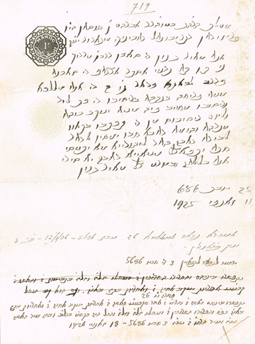 DOCUMENT DU TRIBUNAL RABBINIQUE DE MOGADOR - 719