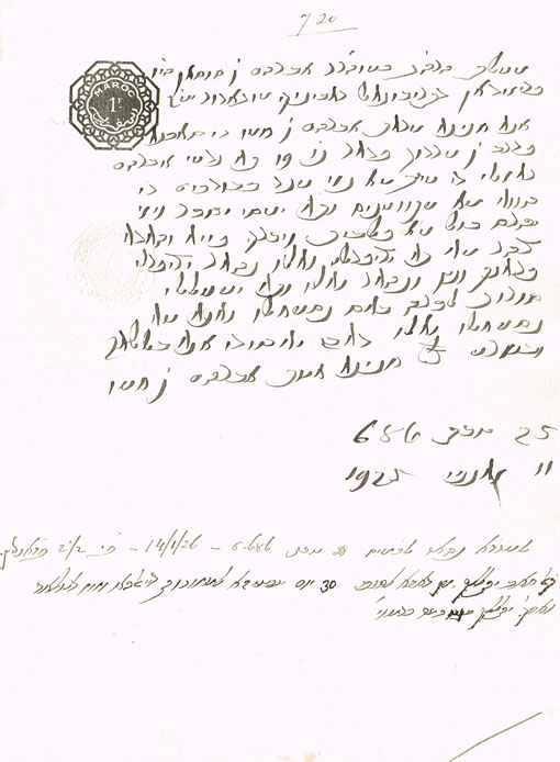 DOCUMENT DU TRIBUNAL RABBINIQUE DE MOGADOR - 720