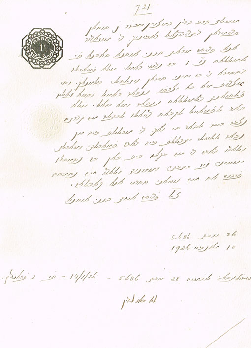 DOCUMENT DU TRIBUNAL RABBINIQUE DE MOGADOR - 721