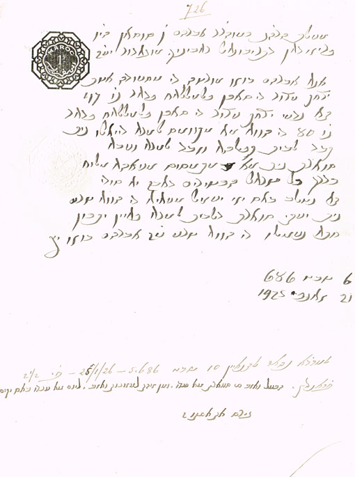DOCUMENT DU TRIBUNAL RABBINIQUE DE MOGADOR - 726