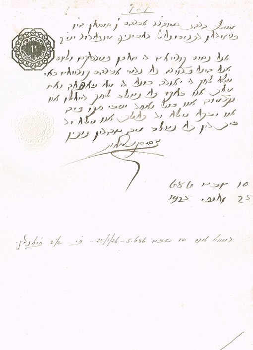 DOCUMENT DU TRIBUNAL RABBINIQUE DE MOGADOR - 727