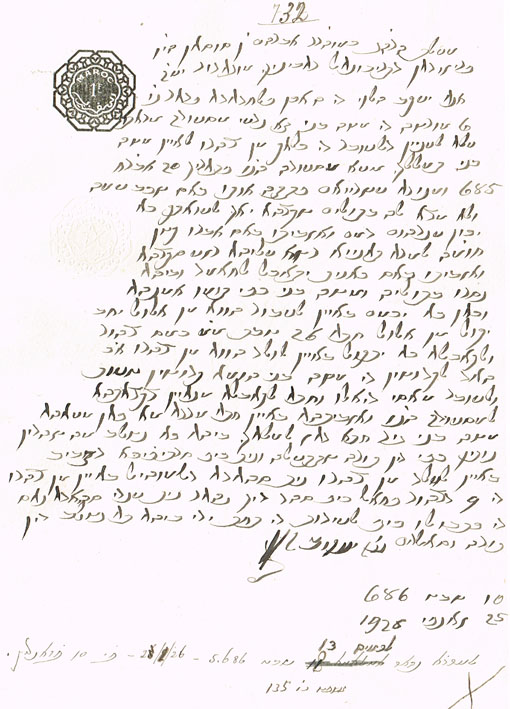 DOCUMENT DU TRIBUNAL RABBINIQUE DE MOGADOR - 732