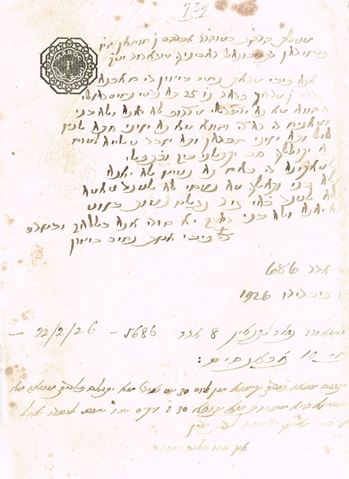 DOCUMENT DU TRIBUNAL RABBINIQUE DE MOGADOR - 739