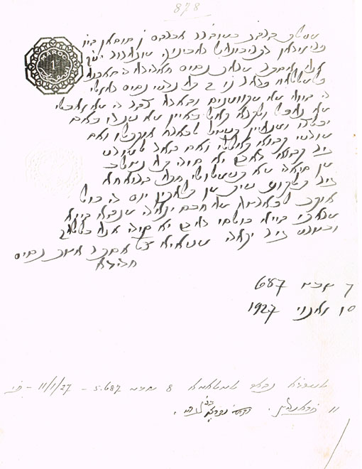 DOCUMENT DU TRIBUNAL RABBINIQUE DE MOGADOR - 878