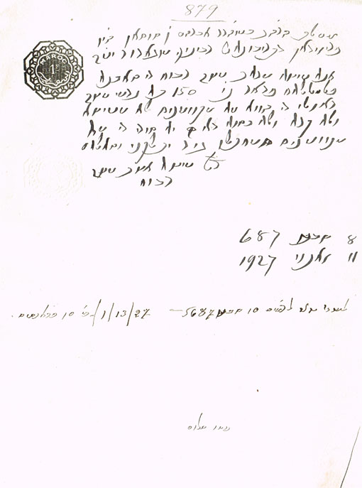 DOCUMENT DU TRIBUNAL RABBINIQUE DE MOGADOR - 879