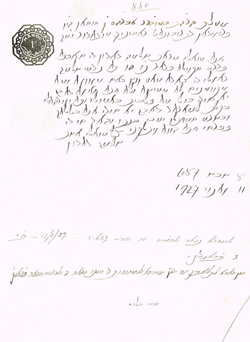 DOCUMENT DU TRIBUNAL RABBINIQUE DE MOGADOR - 880
