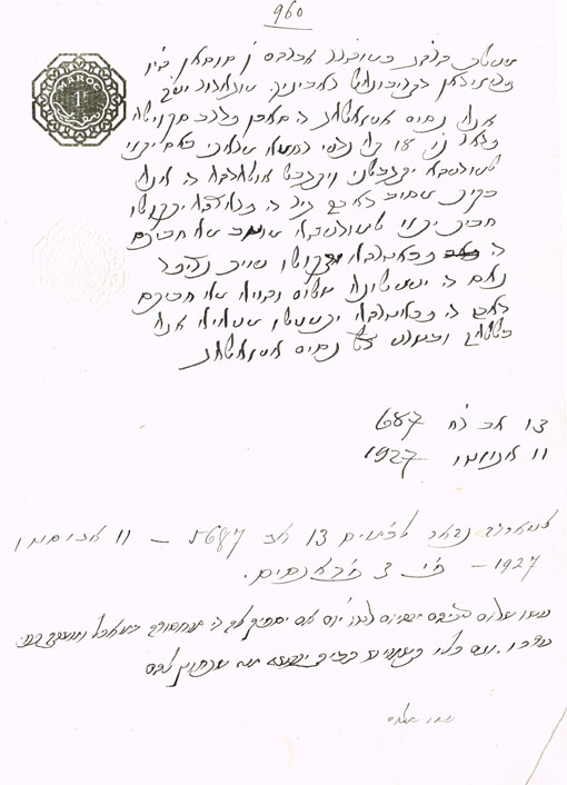 DOCUMENT DU TRIBUNAL RABBINIQUE DE MOGADOR - 960