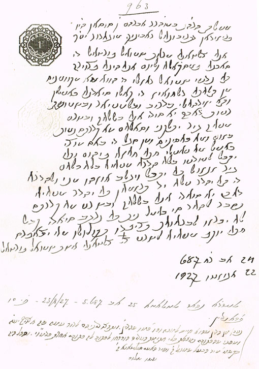 DOCUMENT DU TRIBUNAL RABBINIQUE DE MOGADOR - 963