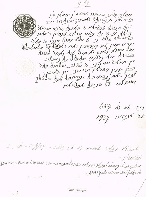 DOCUMENT DU TRIBUNAL RABBINIQUE DE MOGADOR - 967