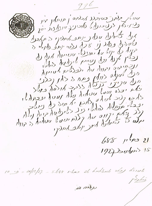 DOCUMENT DU TRIBUNAL RABBINIQUE DE MOGADOR - 996