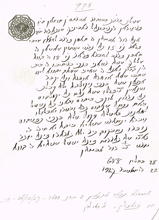 DOCUMENT DU TRIBUNAL RABBINIQUE DE MOGADOR - 998