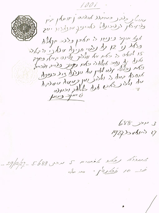 DOCUMENT DU TRIBUNAL RABBINIQUE DE MOGADOR - 1001
