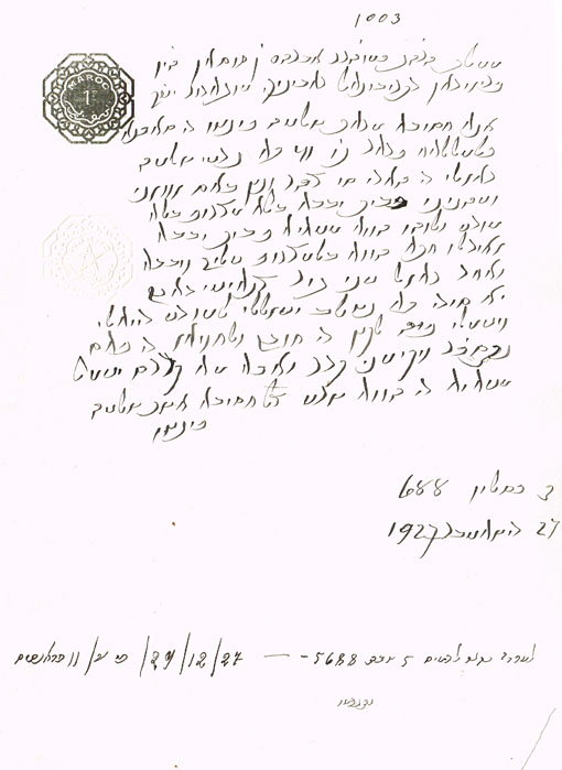 DOCUMENT DU TRIBUNAL RABBINIQUE DE MOGADOR - 1003