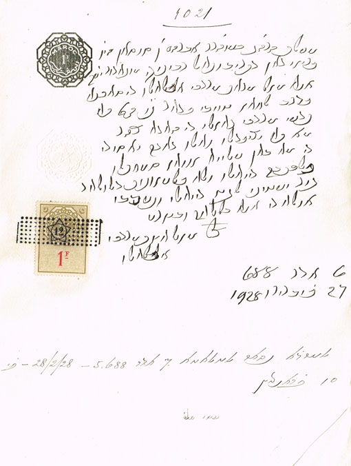 DOCUMENT DU TRIBUNAL RABBINIQUE DE MOGADOR - 1021