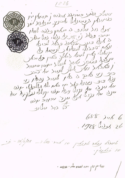 DOCUMENT DU TRIBUNAL RABBINIQUE DE MOGADOR - 1035