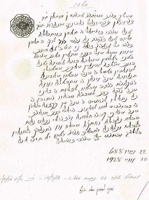 DOCUMENT DU TRIBUNAL RABBINIQUE DE MOGADOR - 1060