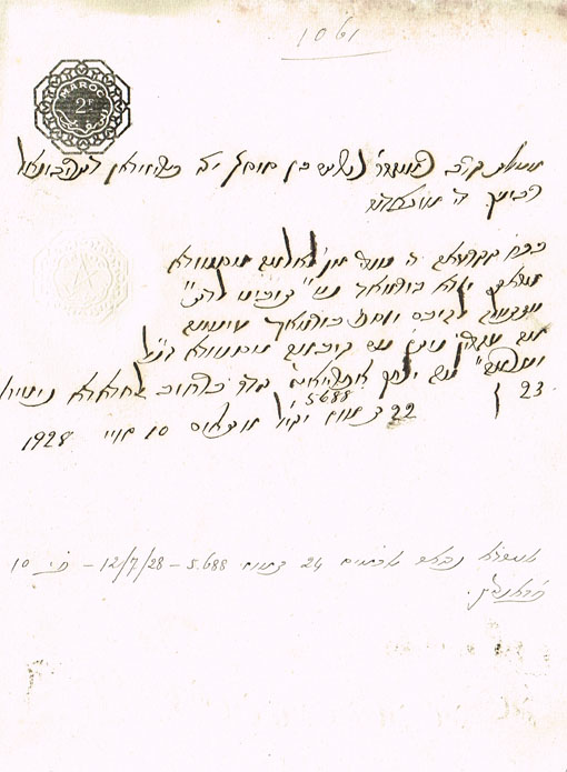 DOCUMENT DU TRIBUNAL RABBINIQUE DE MOGADOR - 1061
