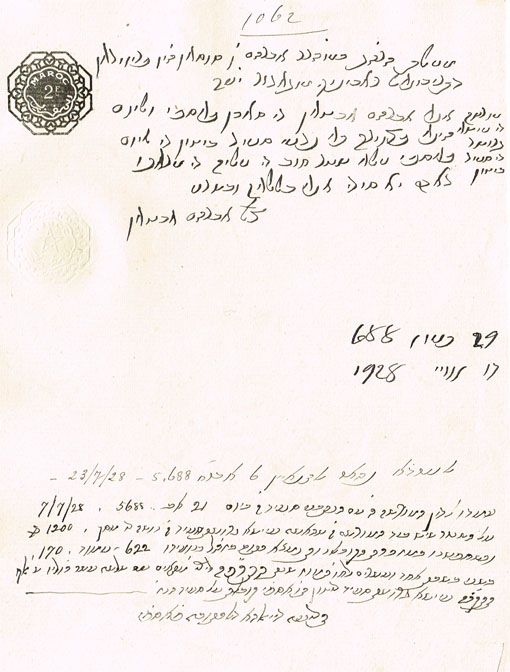 DOCUMENT DU TRIBUNAL RABBINIQUE DE MOGADOR - 1062