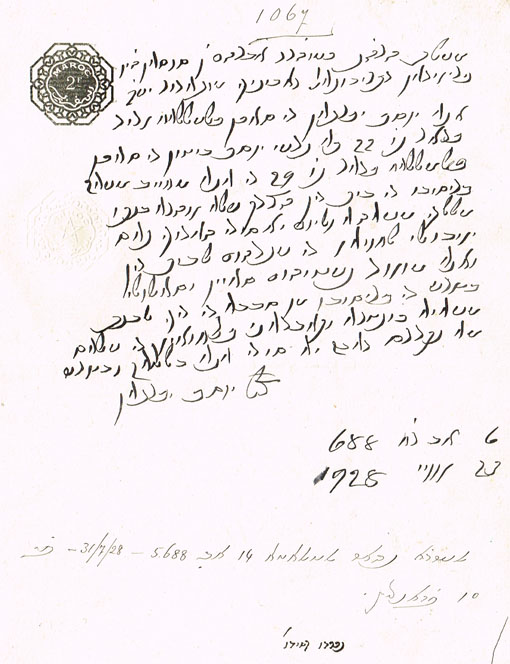 DOCUMENT DU TRIBUNAL RABBINIQUE DE MOGADOR - 1067