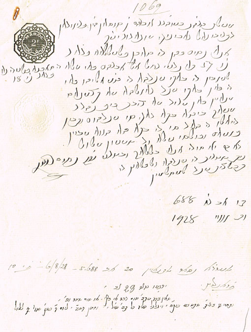 DOCUMENT DU TRIBUNAL RABBINIQUE DE MOGADOR - 1069