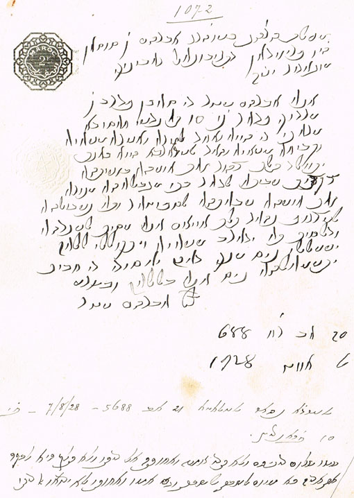 DOCUMENT DU TRIBUNAL RABBINIQUE DE MOGADOR - 1072