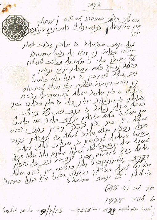 DOCUMENT DU TRIBUNAL RABBINIQUE DE MOGADOR - 1074