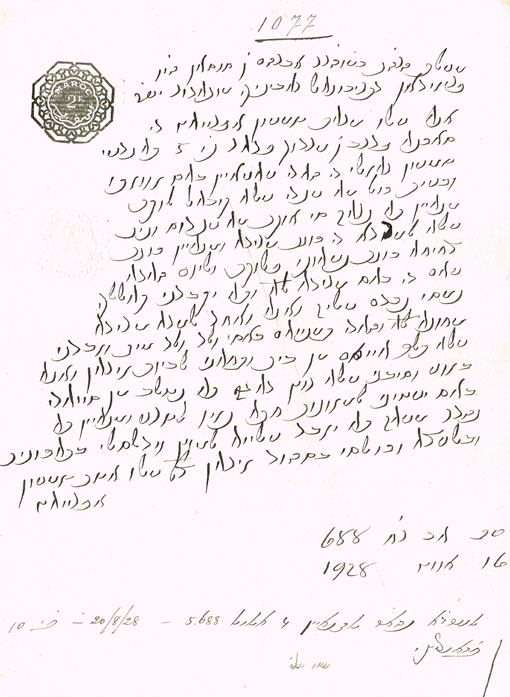 DOCUMENT DU TRIBUNAL RABBINIQUE DE MOGADOR - 1077